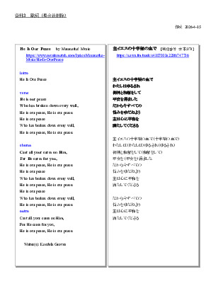 ■開催予告■ 岡本牧師と共に味わう讃美の力 (第50回) 「キリストこそ私たちの平和 ”He Is Our Peace”」 (主イエスの十字架の血で) ~シンシナティ日本語教会主催